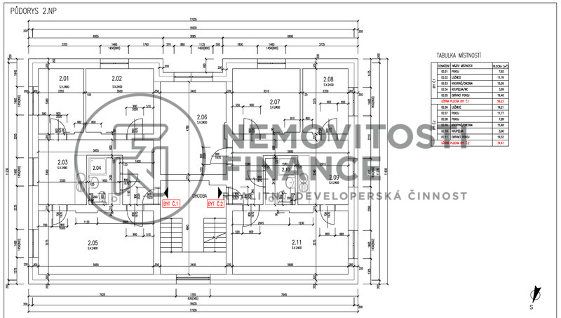 o dispozici 3+1, o celkové podlahové ploše 63,3 m2, umístěný ve 3. NP